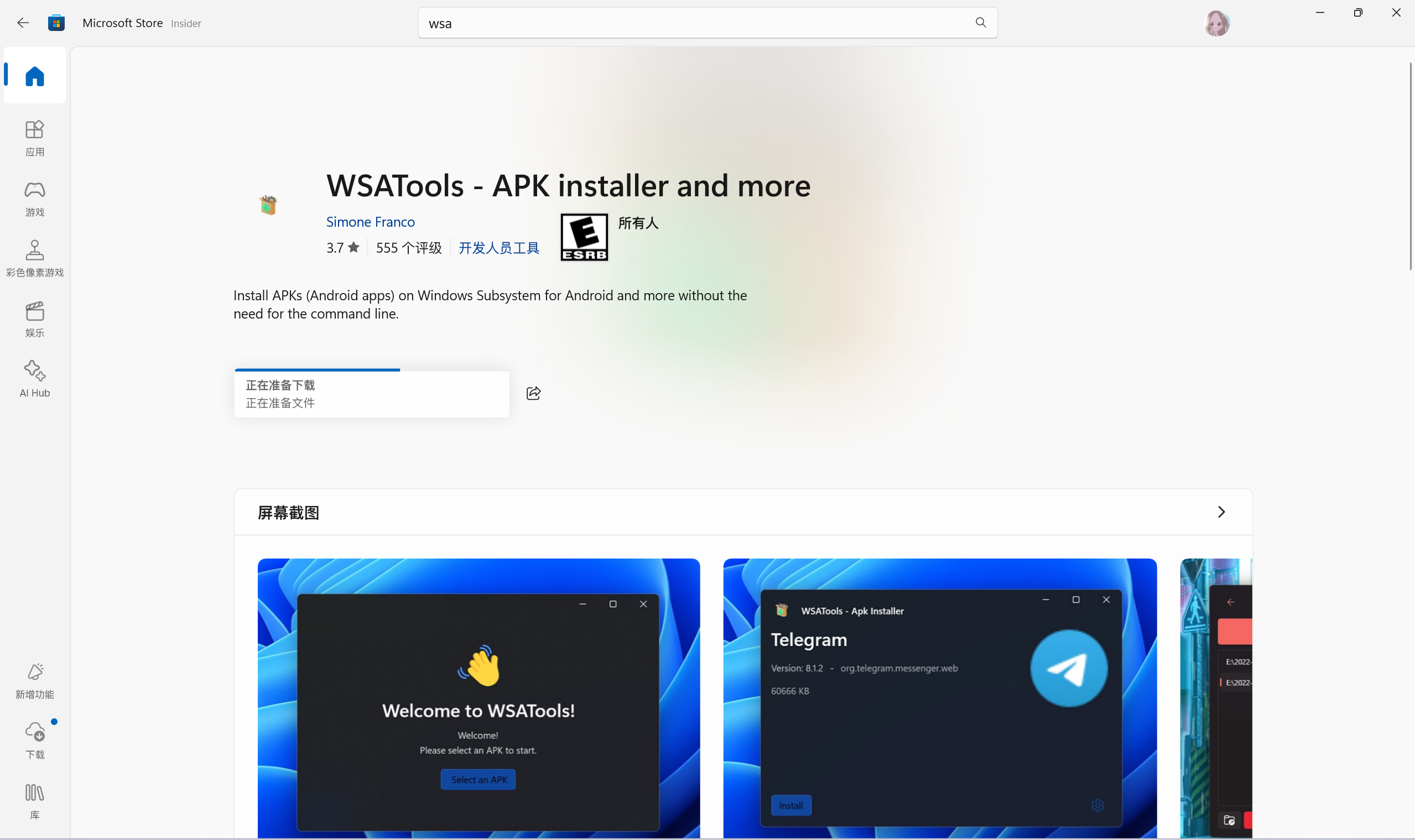 下载WSA TOOL及安卓子系统